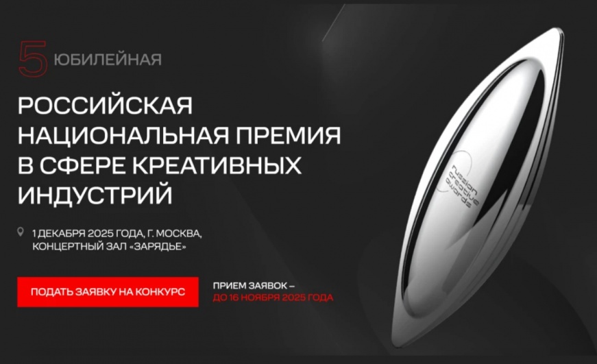 Шанс на успех: Креативный бизнес приглашают заявить о себе на V Российской Национальной премииПродолжается прием заявок на V Российскую Национальную премию в сфере креативных индустрий. Проекты принимаются по 11 номинациям до 16 ноября.